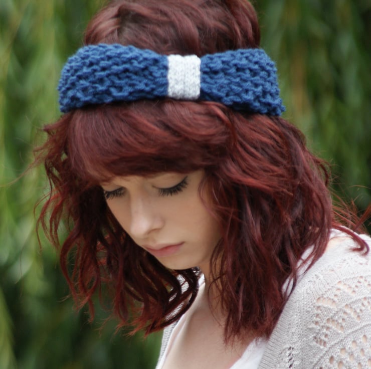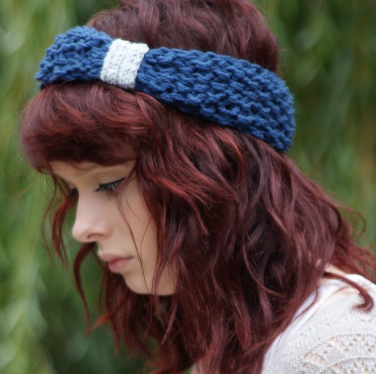 Made in 100% acrylic in a denim blue with a light grey centre.