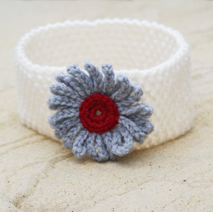 Wide Knitted flower headband/ear warmer