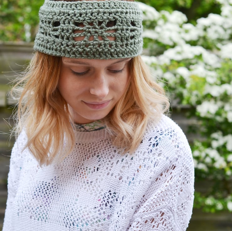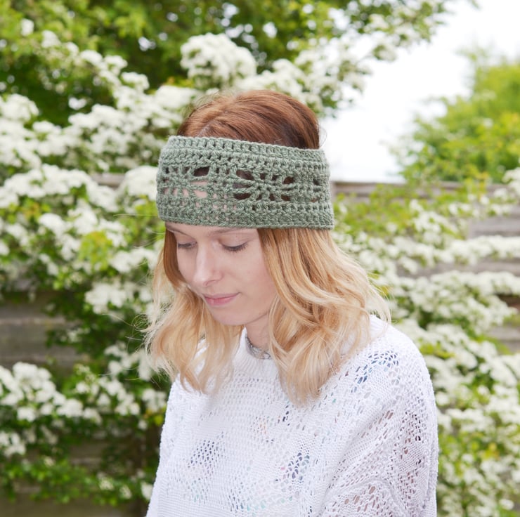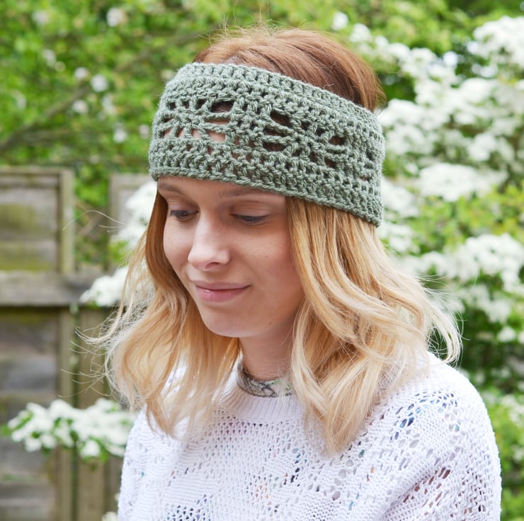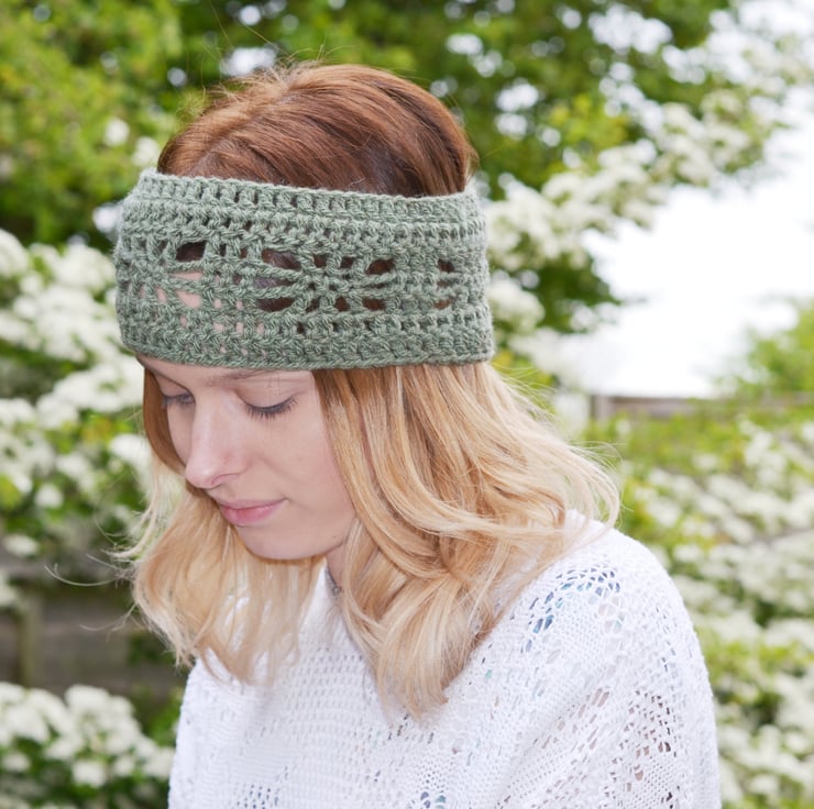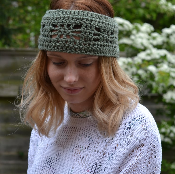 Made in 100% acrylic in khaki in a pretty pattern.