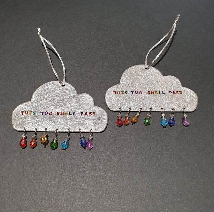 A little cloud with a positive message to remind you that 'This Too Shall Pass'.