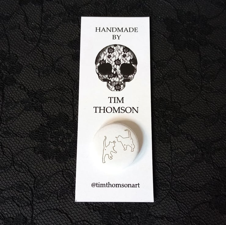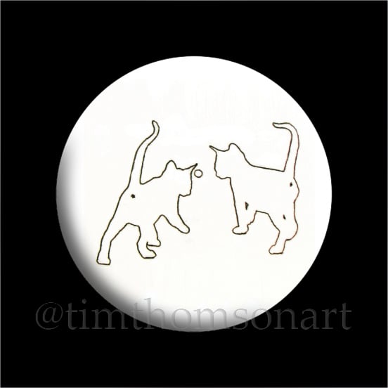 Originally a large scale monoprint, a simple line drawing, of two kittens - and now a badge!