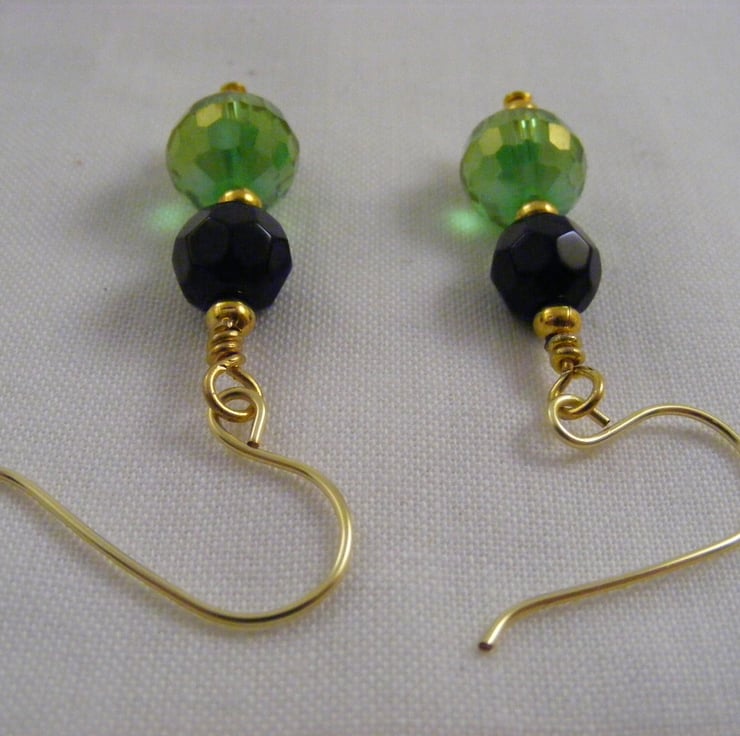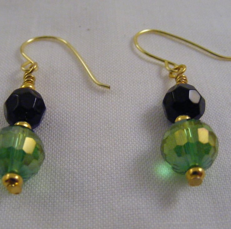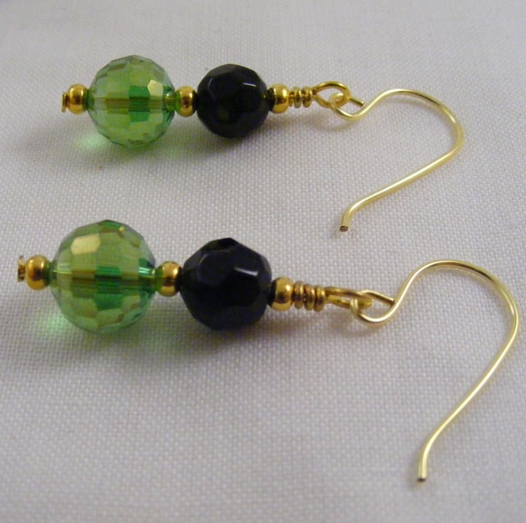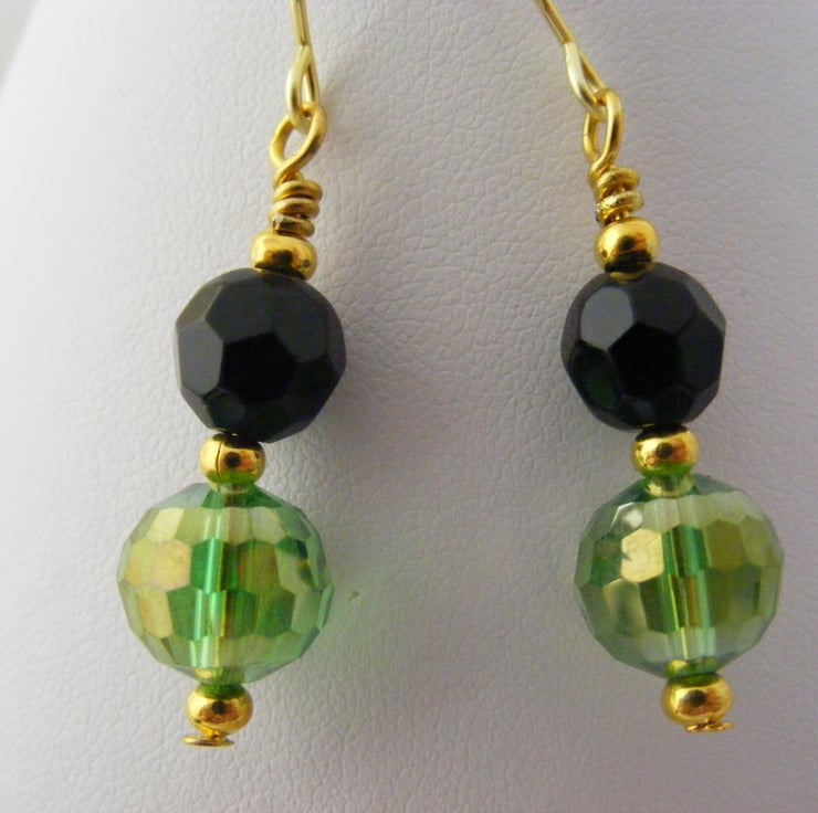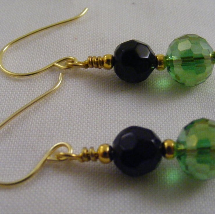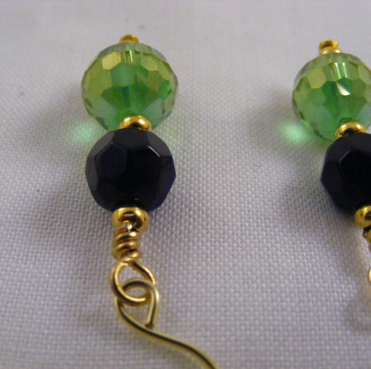 8 mm black faceted crystal rounds, 3 mm gold plated spacers, gold plate headpins and wire to make the ear wires.