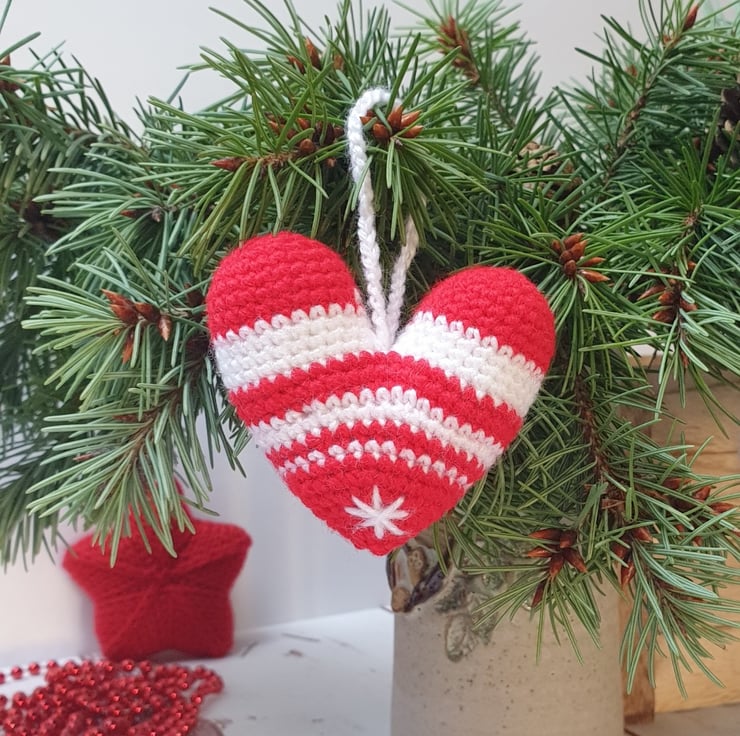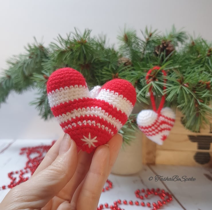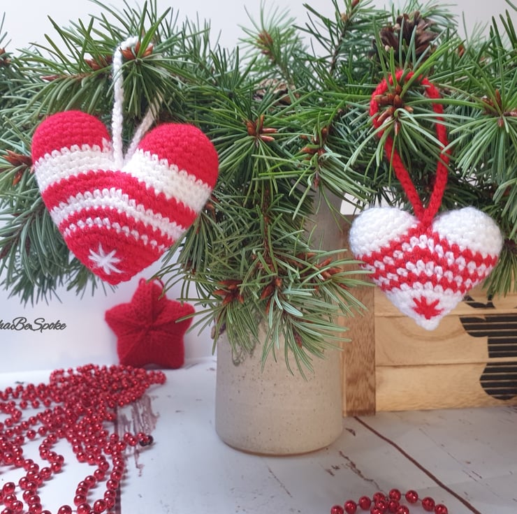 Simple but sophisticated, these crochet hearts will be great addition to your Christmas decor. Can be used as a Christmas tree ornament or as addition to your winter flower arrangement.