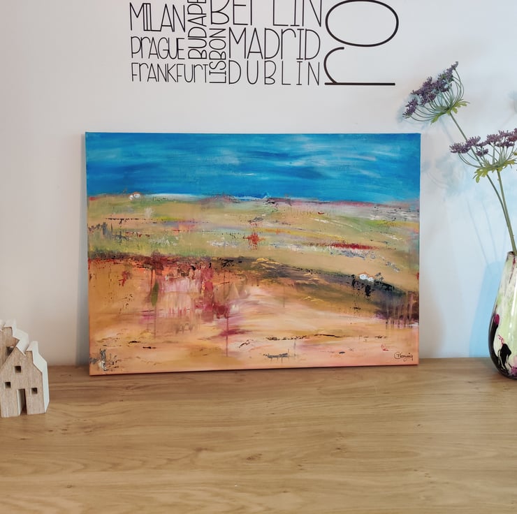 Original acrylic painting of fincas in the Cadiz region of Andalucía, from my travels. 70x50cms on stretched canvas. Sold unframed.