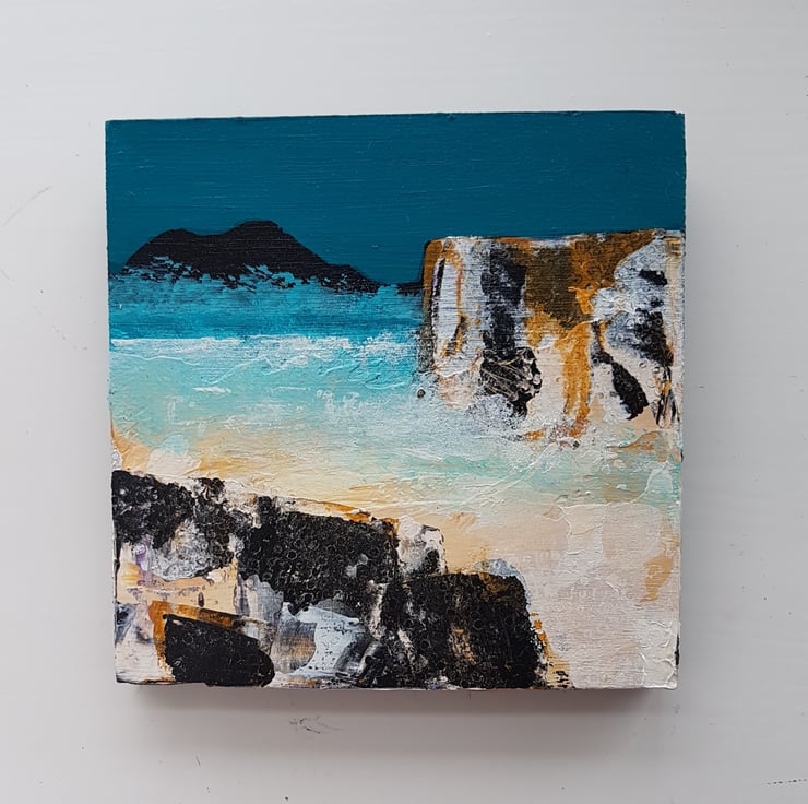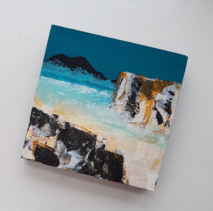 Each original painting is just 10 cm x 10 cm on wood signed at the back and has a hook for hanging on the wall.Each original painting is just 10 cm x 10 cm on wood signed at the back and has a hook for hanging on the wall.All my originals are painted with a palette knife inspired by the coastal areas and Islands around the UK