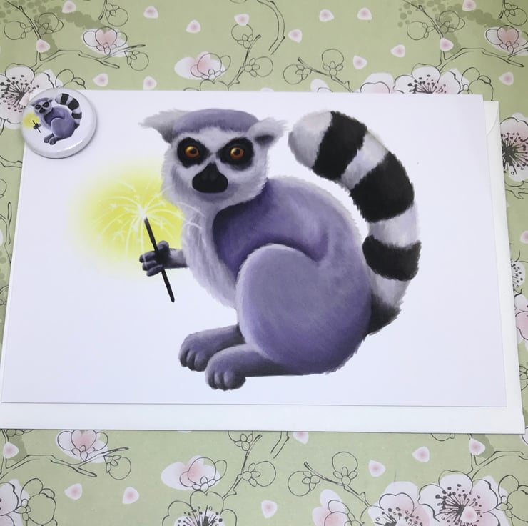 4.13" x 5.82" (105mm x 148mm) - landscape thick 340gsm card, sustainably sourced paper stock. With a light satin coating on the outside, the inside is left uncoated, making it easier for you to write your own message. The mini magnet is round, 2.5cm (1") covered with scratch and UV-resistant Mylar. Metal/magnet and plastic.