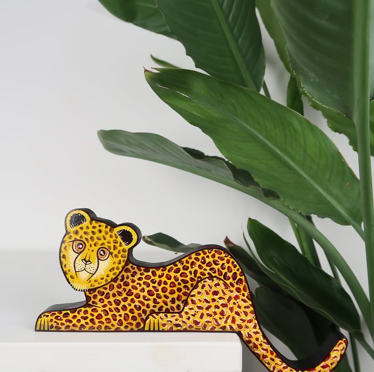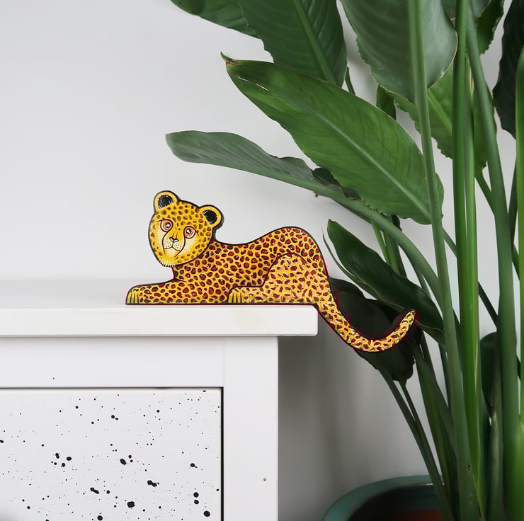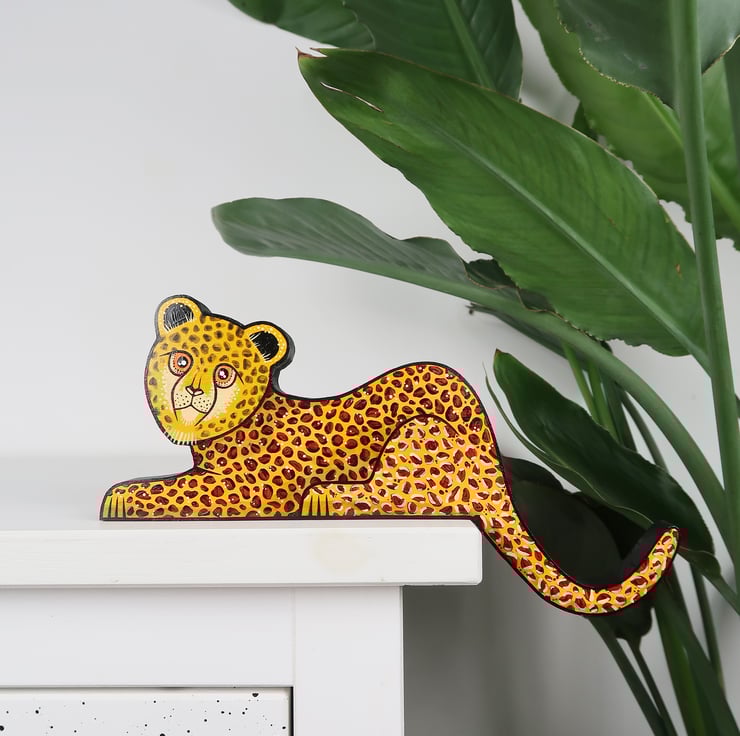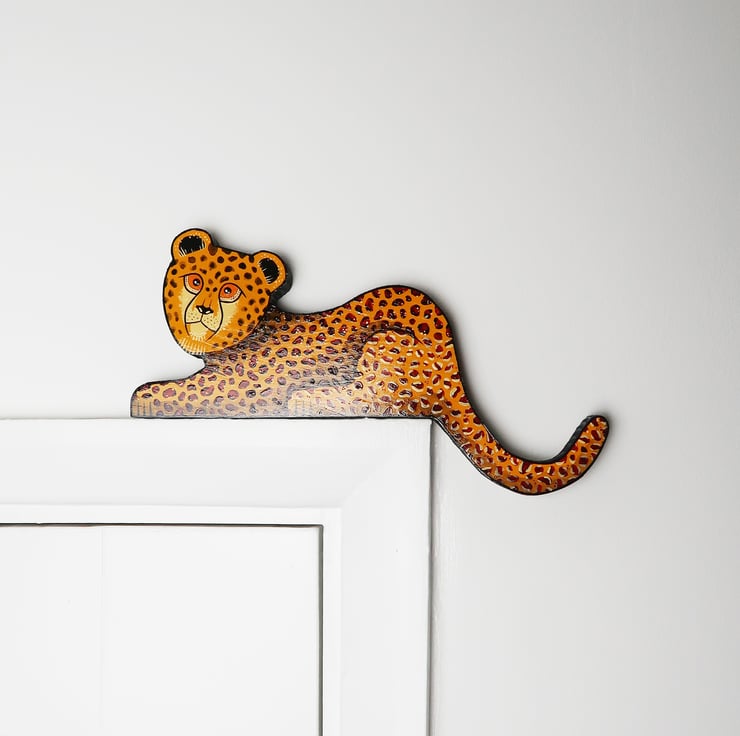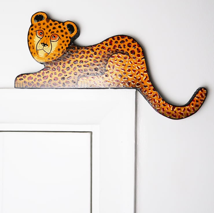 You can put this cheetah anywhere you want, but my recommendation is to use it as a shelf decor, big frames decoration (as it weights around 200 gram) . Perfect as a door frame topper. Should "sit" stable on the edge, some double sided tape can be used to secure it more if the door frame is too shallow. Can be hang on a wall as well.