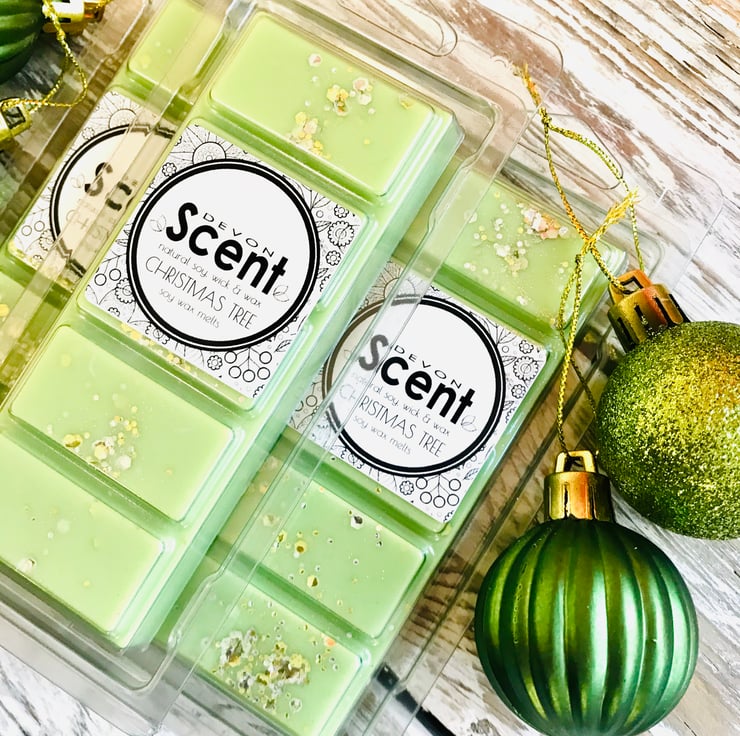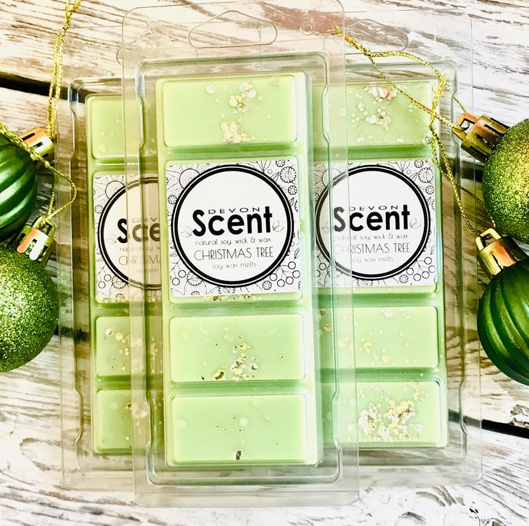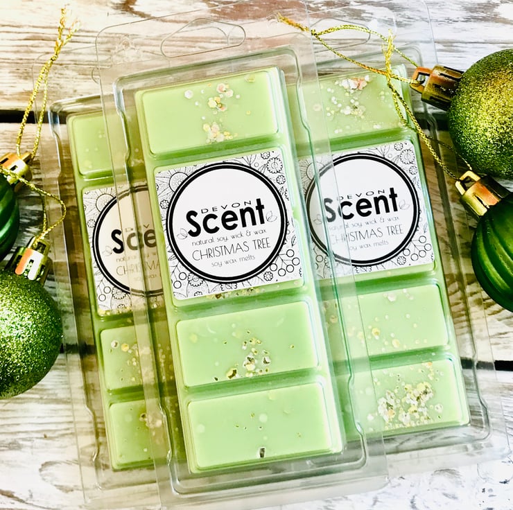 Our highly fragranced long lasting Christmas Tree Snap Bar Wax Melts have a fresh spicy Christmas fragrance with top notes of pine needles supported by a middle note of clove, cinnamon and pimento, resting on a base of fir balsam and precious woods.