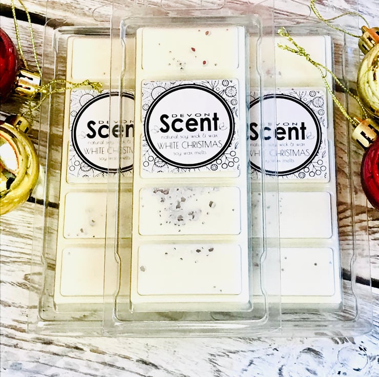 Our highly fragranced long lasting White Christmas Snap Bar Wax Melts have a cool floral scent with fresh crisp green notes enlivened with menthol and eucalyptus and a touch of mandarin, leading to a watery floral heart of lavender, white lily and chamomile.