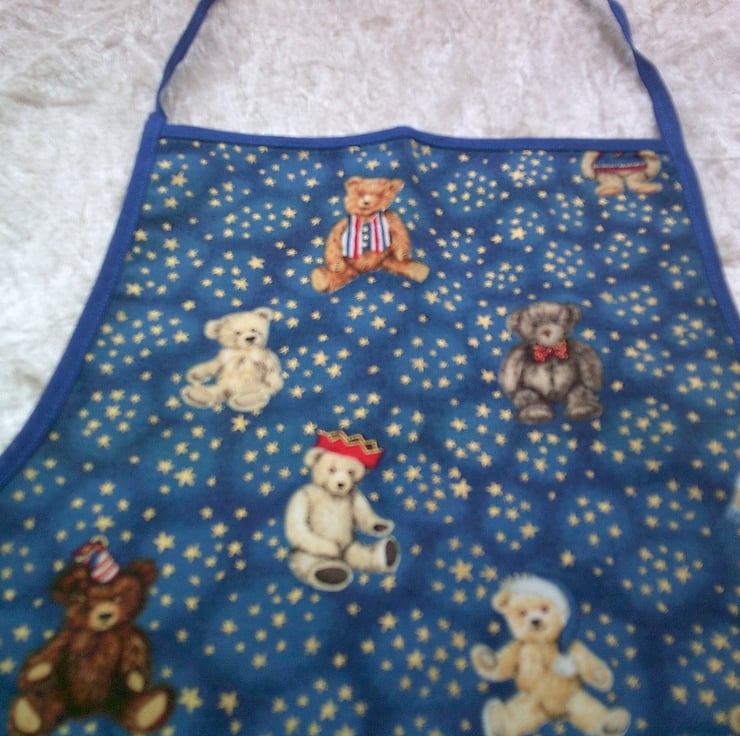 It is fully machine washable on a 40 degree wash and is made from 100% Cotton. It is perfect for use when eating or even doing craft or painting.