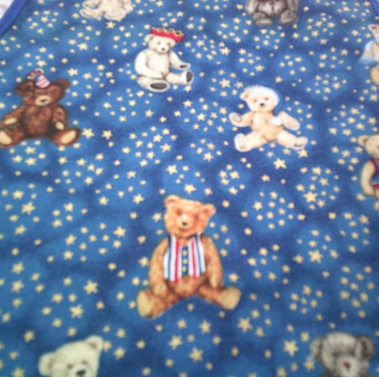 The design is Teddy Bears in Party Hats and Scarves on a Navy Blue background.
