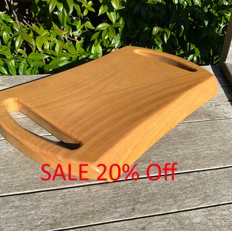 A Beech wood cheese board with a simple waisted design with chamfered edges. Board coated in food safe oil giving a light satin sheen appearance.