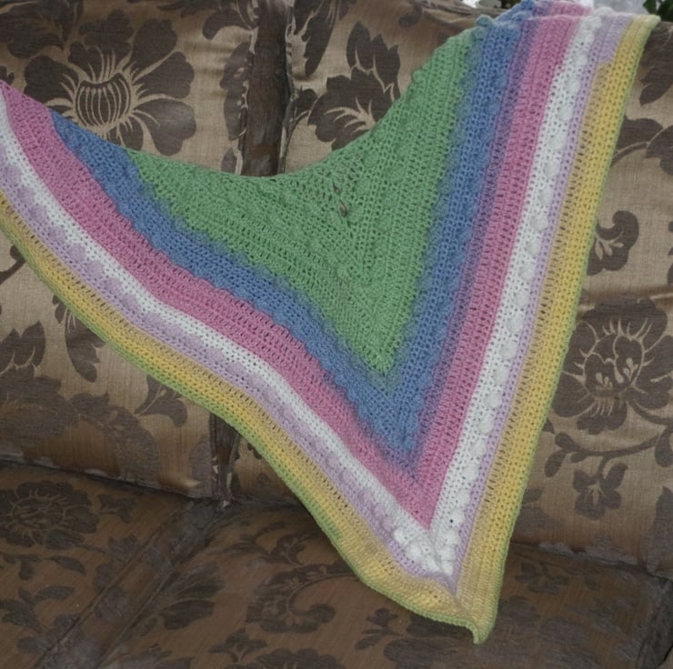 I enjoyed making this one as I used several different patterns to get the effect that I wanted. I used a Baby Yarn Cake so it is lovely and soft and machine washable.