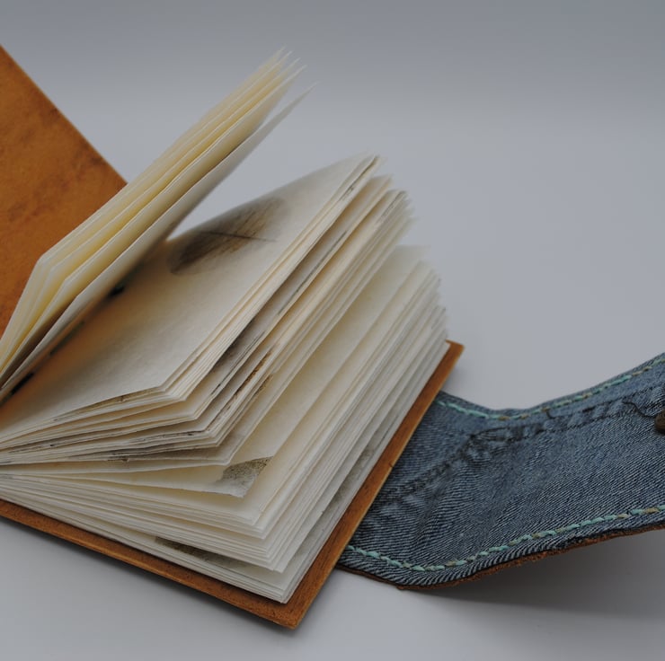 This hand bound journal was made by traditional methods, the paper was made and cut by hand and then stitched.