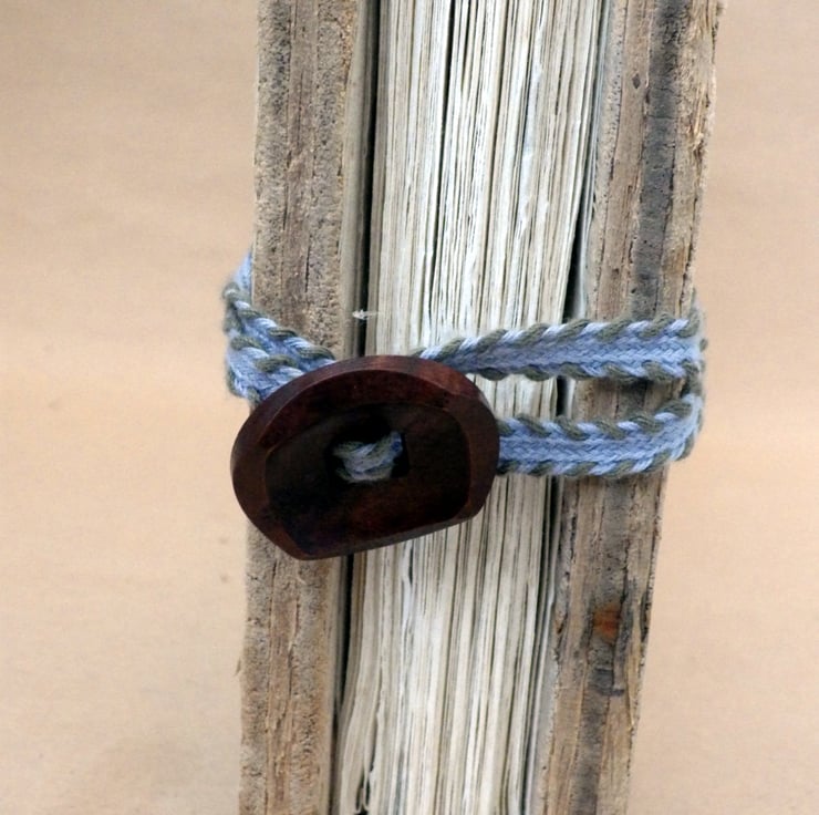 Book closure- salvaged cotton tapes and a purchased wooden button.