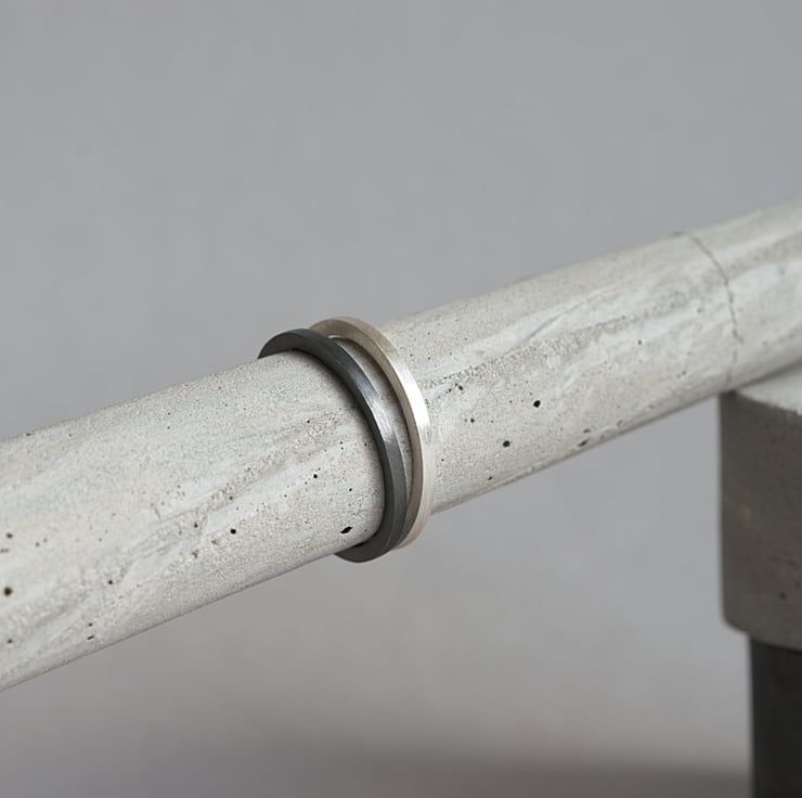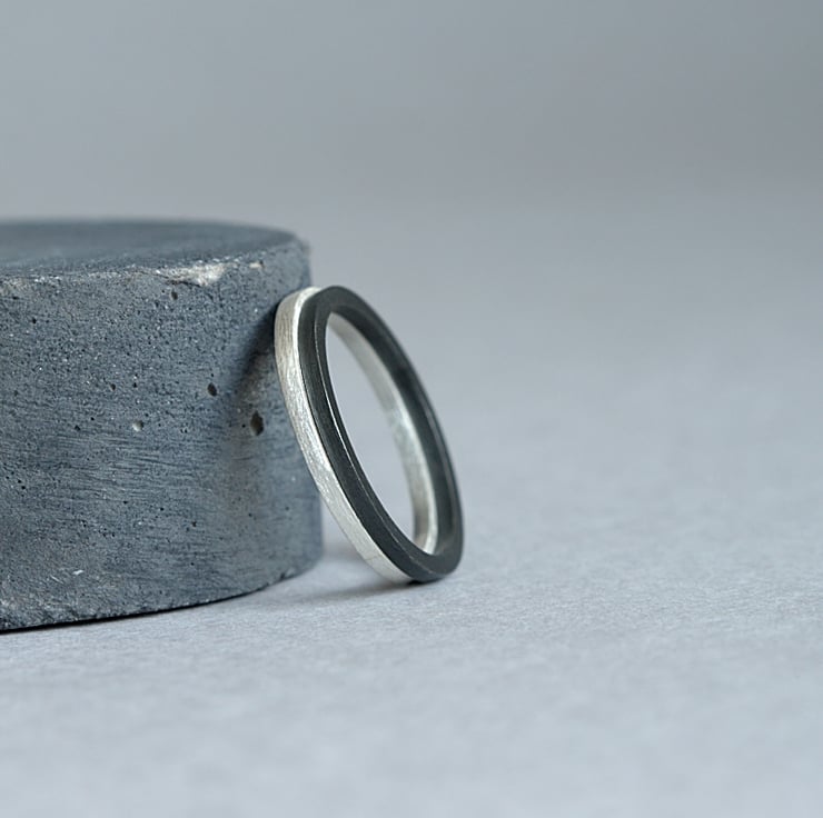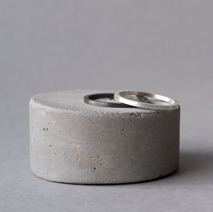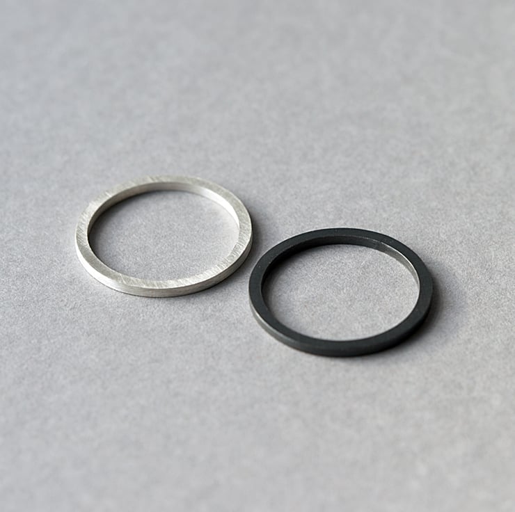 One ring is made from oxidised black 925 sterling silver, one from frosted silver.