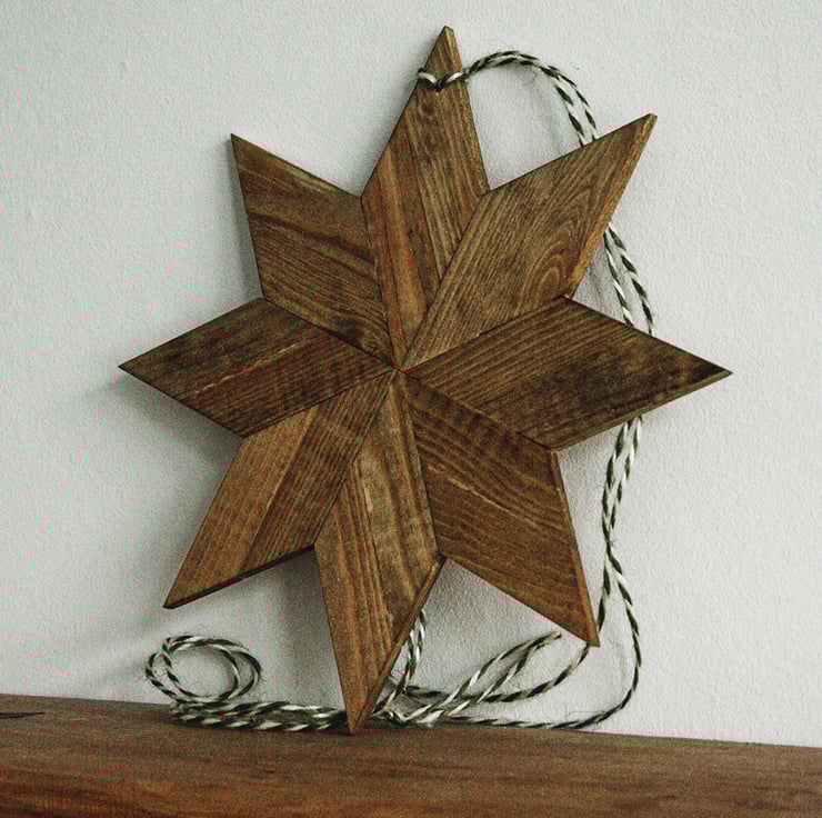 Beautiful, contemporary handmade wooden star, perfect for hanging as part of your Christmas display but equally stunning all year round. Each star is crafted from 6mm pine, each section carefully selected to give your star it's unique appearance. They are hand cut and finished by me, a real labour of love. These Scandi-style ornaments are available in two other sizes and two finishes.