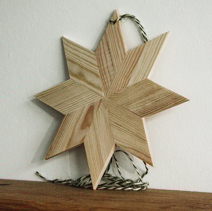 Beautiful, contemporary handmade wooden star, perfect for hanging as part of your Christmas display but equally stunning all year round. Each star is crafted from 6mm pine, each section carefully selected to give your star it's unique appearance. They are hand cut and finished by me, a real labour of love. These Scandi-style ornaments are available in two other sizes and two finishes. Natural pine finish stars can be stained or painted by you to suit your style!