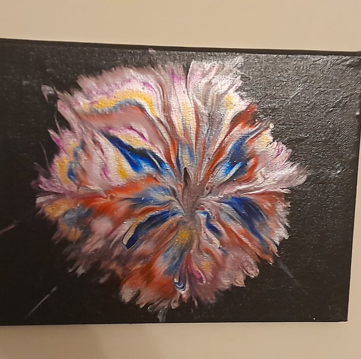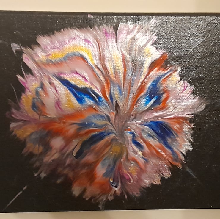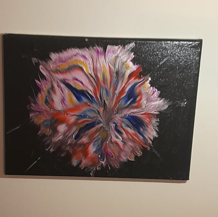 This is a unique piece of art made by pouring acrylic paint. In art like this everyone sees something different or looks at it from a different way up. There's no right or wrong way to hang it.