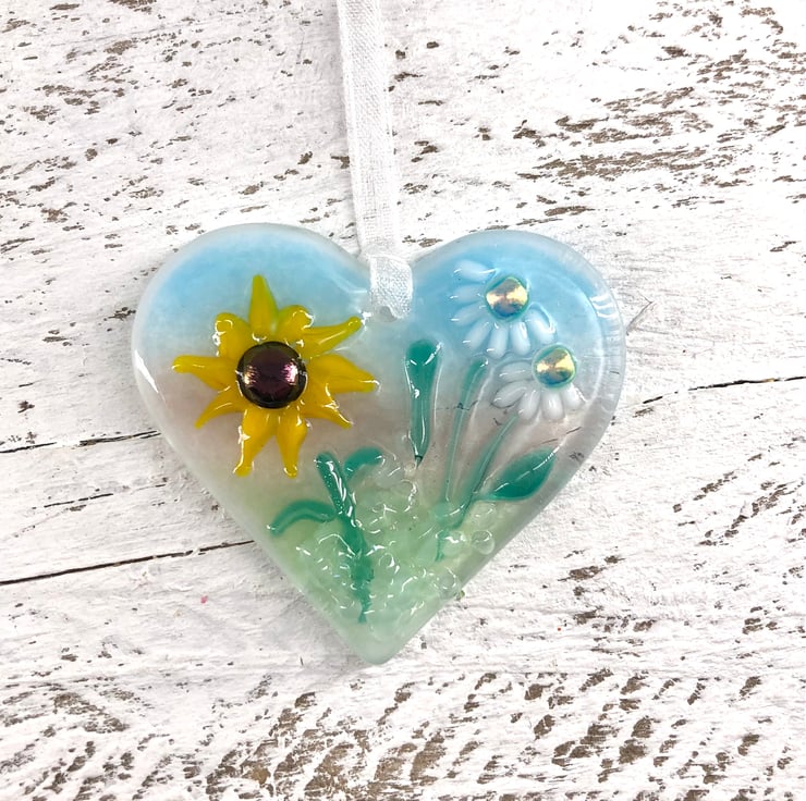 This gorgeous little heart is a mini work of art and no two are the same. It has had two firings in the kiln and the detail is made up from tiny pieces of lamp worked glass with sparkly elements of dichroic glass.