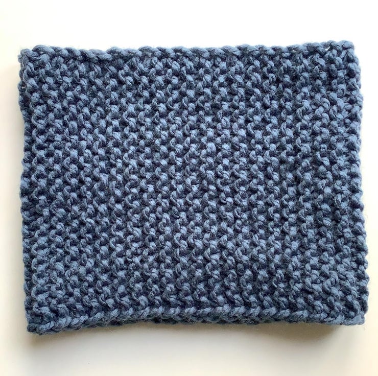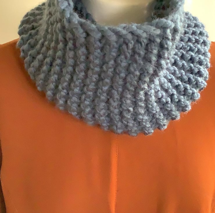 Knitted in garter stitch the cowl is foldable so can be worn around the neck or higher around the head to keep chilly winds away from your nose and ears.