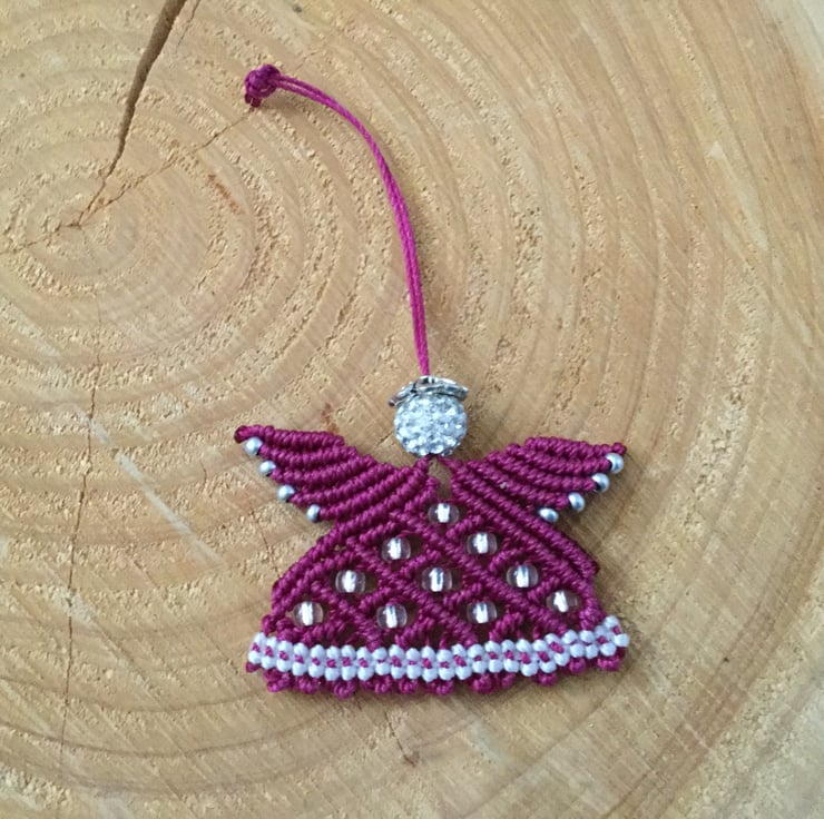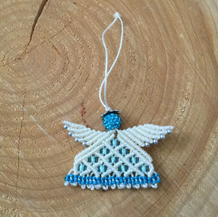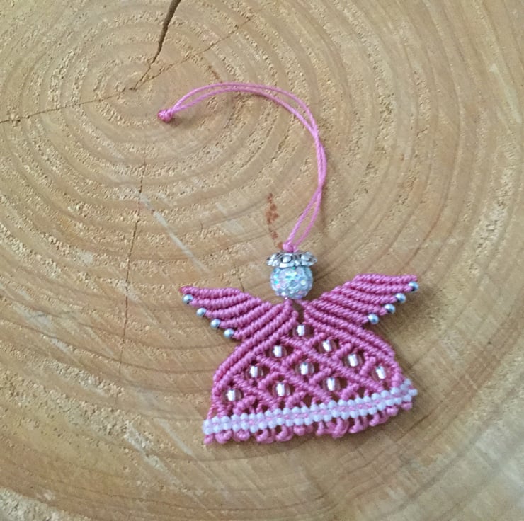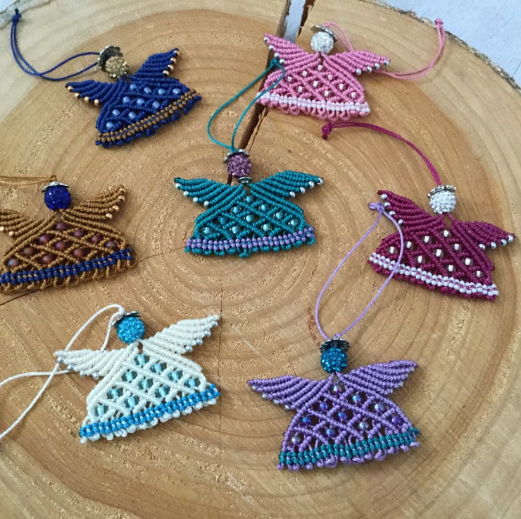 Pretty handmade beaded macrame Christmas Angels in a selection of gorgeous coloured.