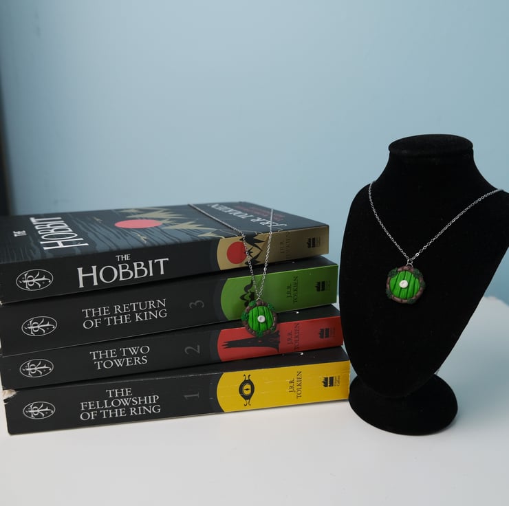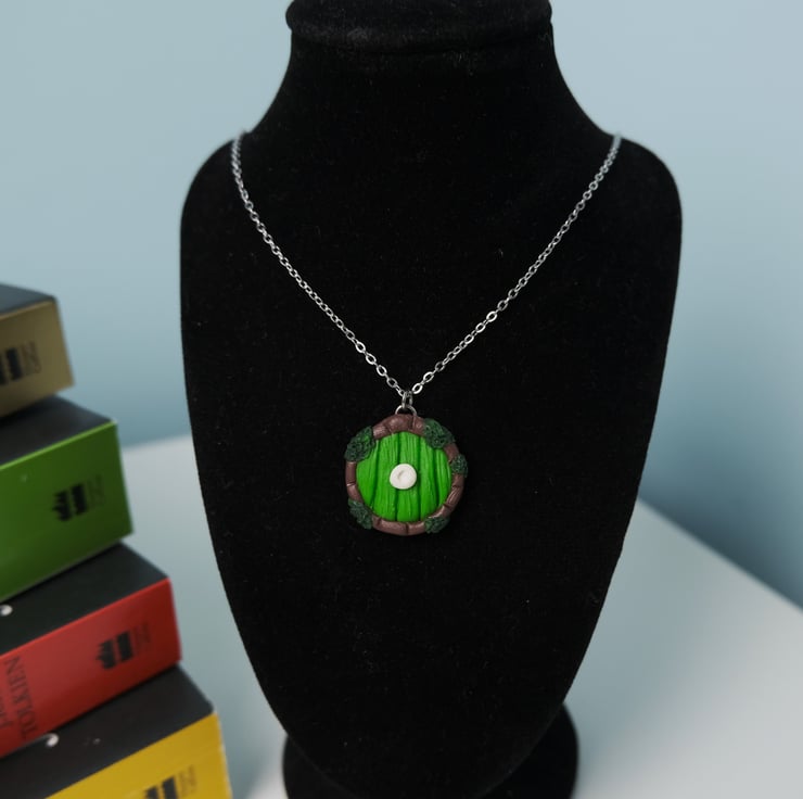 This nature inspired door is a great gift for someone who loves mystical creatures, fairies and hobbits. This miniature door has been created using a bright green clay surround with a brown wood effect and moss outline.