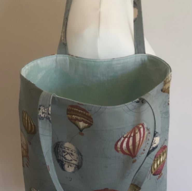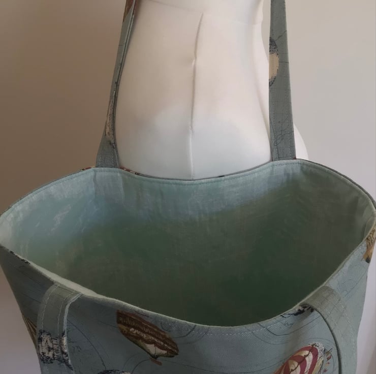 The bag is fully lined with a complimentary duck egg blue/white mottled cotton fabric and interlined with a fusible fleece, which gives it body and structure.