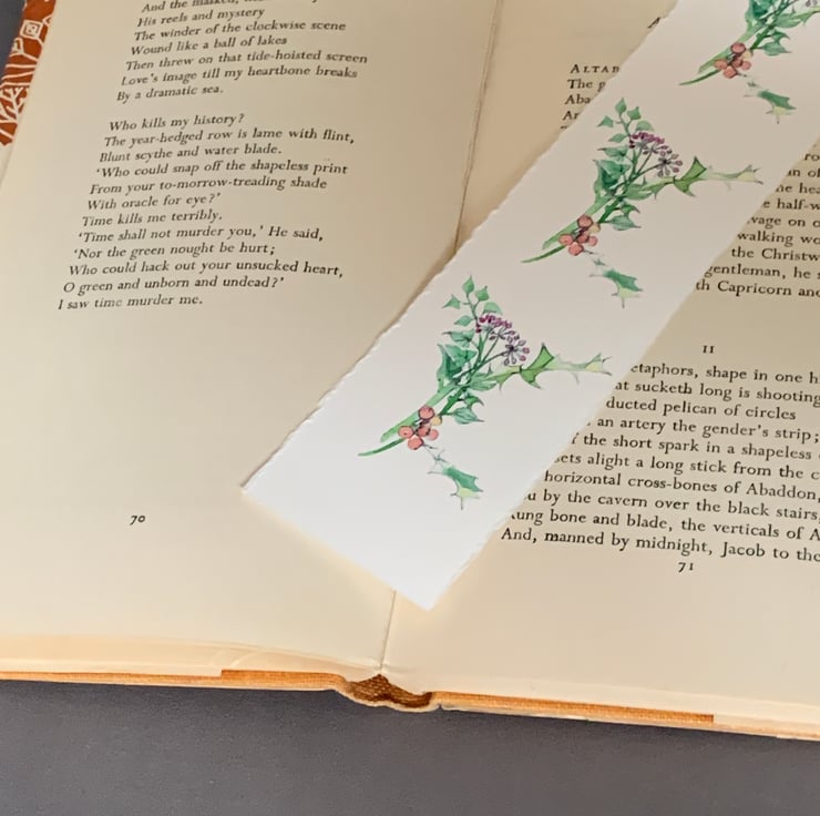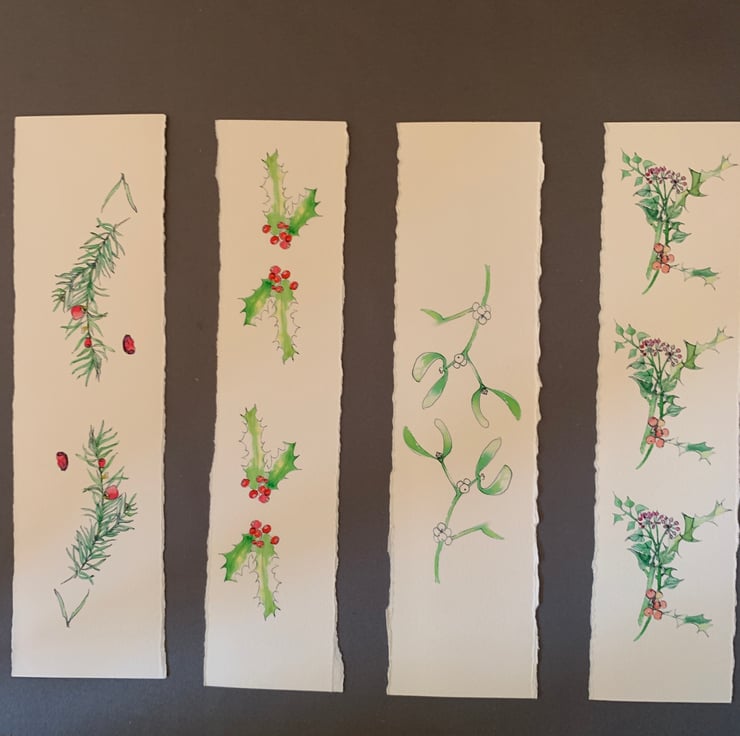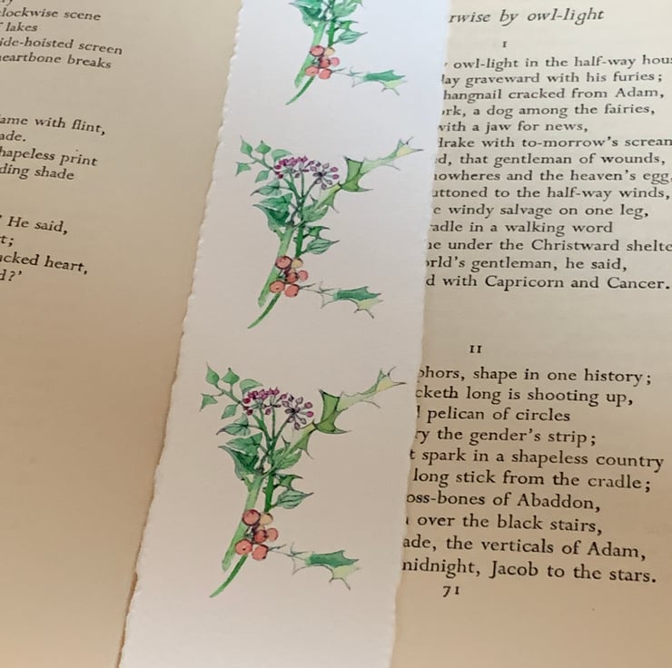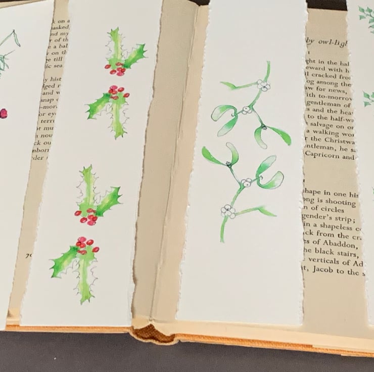 Original hand drawn artwork in miniature reprinted as bookmarks.