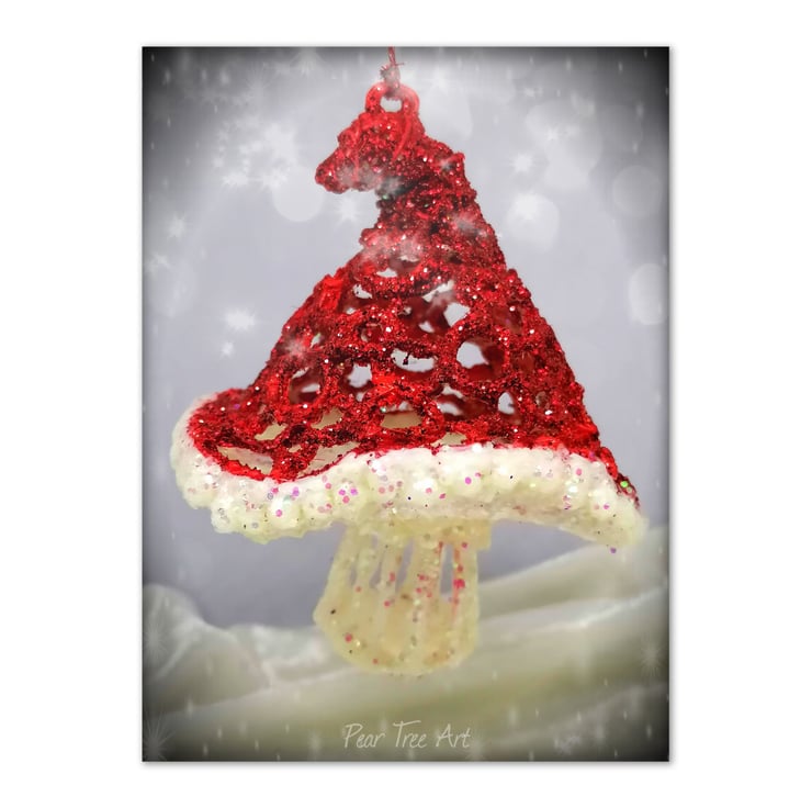 "Handcrafted Red Toadstool decoration, perfect for adding a whimsical touch to your Christmas tree. Hand drawn with 3D printer pen with intricate detailing, this unique decoration is a beautiful addition to any holiday collection. Ideal for woodland-themed Christmas décor or nature-inspired gifts."