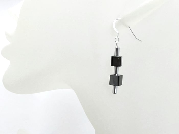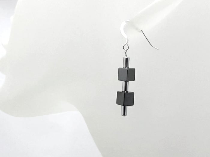 The gunmetal Hematite cubes are 6mm in size & the alternating silver Hematite tubes are 5mm x 3mm. The Hematite tube beads have been electroplated with Sterling Silver to a mirror like finish so really do catch the light.