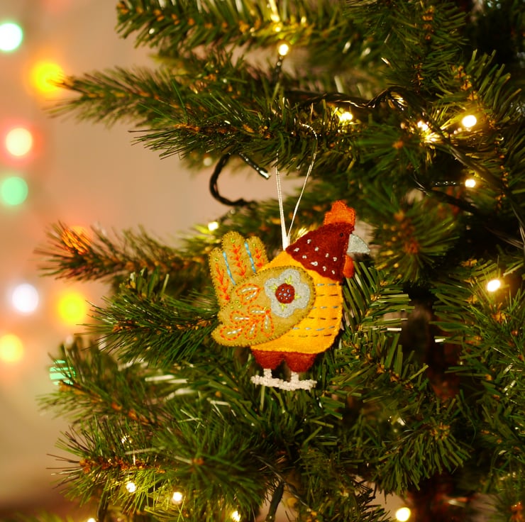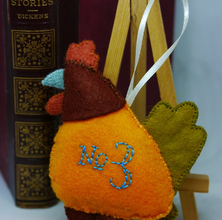 Approximate size French Hen four inches (10cm) by four inches (10cm) excluding loop.