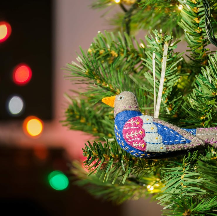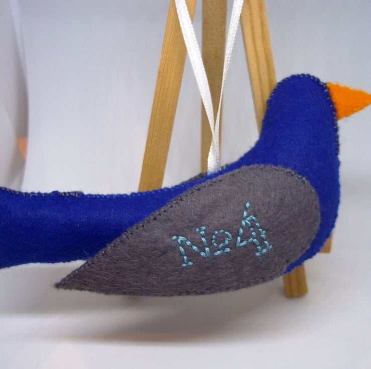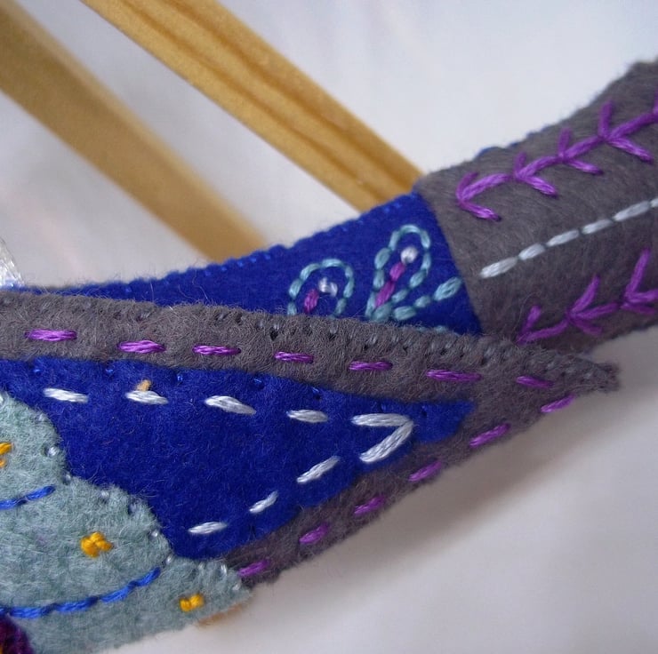 Lovingly hand stitched and embroidered felt ornament with narrow satin hanging loop would look great adorning the Christmas tree or anywhere as part of your festive display also idea as a present for the person who is always on the lookout for something different. Each ornament is lightly stuffed to give shape.
