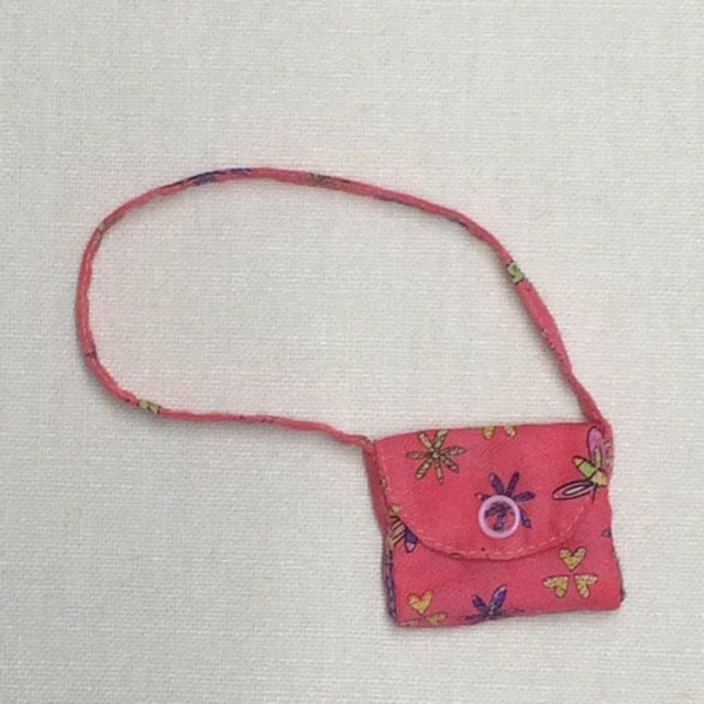 Her matching pink bag is made from cotton and fastened with a stud so that treasures can be kept inside.