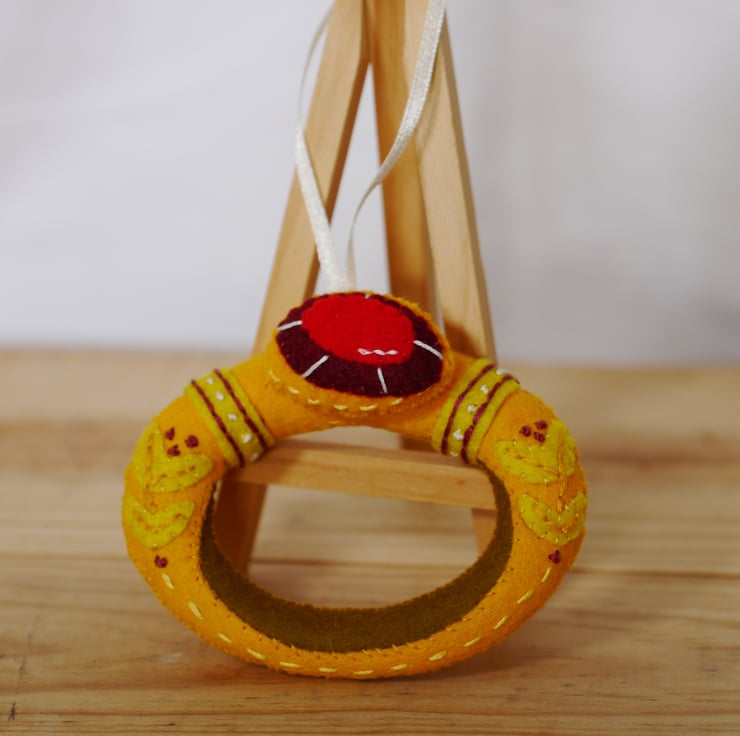 Lovingly hand stitched and embroidered felt ornament with narrow satin hanging loop would look great adorning the Christmas tree or anywhere as part of your festive display also idea as a present for the person who is always on the lookout for something different. Each ornament is lightly stuffed to give shape.