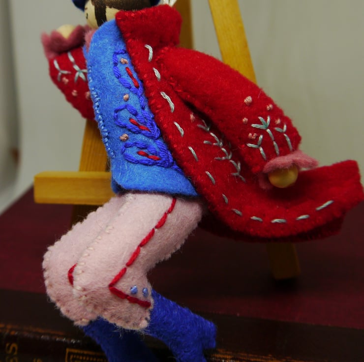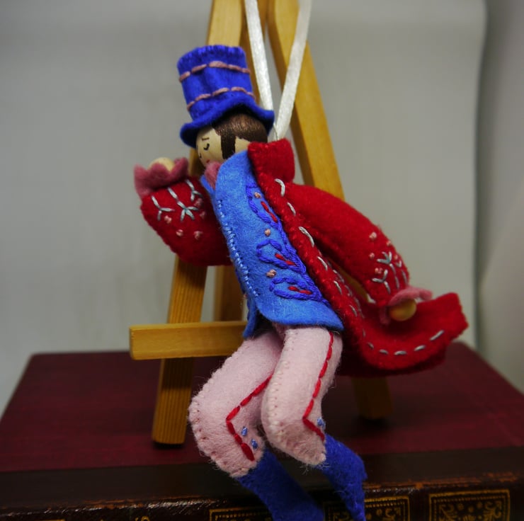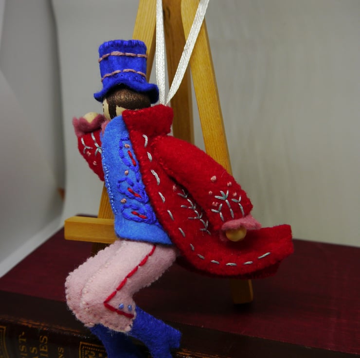 Lovingly hand stitched and embroidered felt ornament with narrow satin hanging loop would look great adorning the Christmas tree or anywhere as part of your festive display also idea as a present for the person who is always on the lookout for something different. Each ornament is lightly stuffed to give shape. Lord leaping has some movement in legs for positioning of leap.