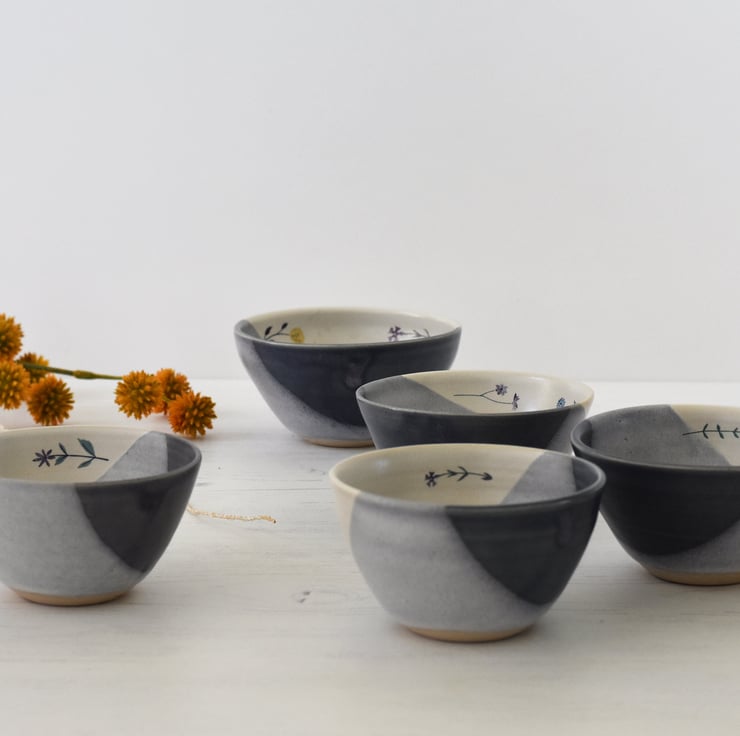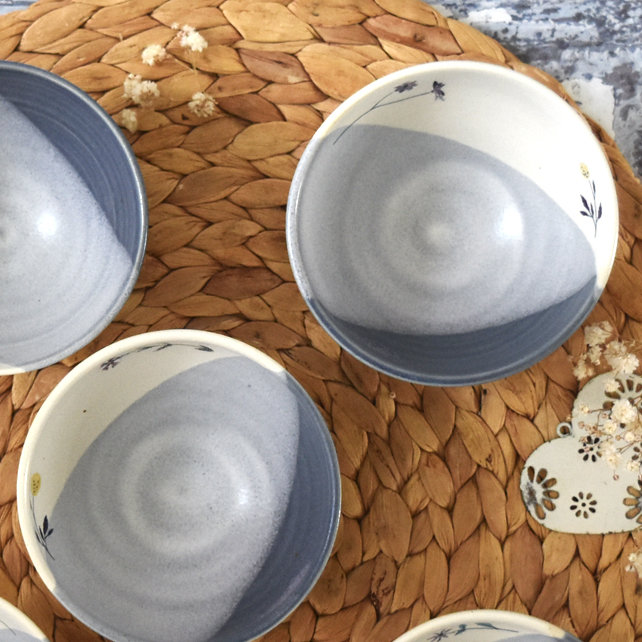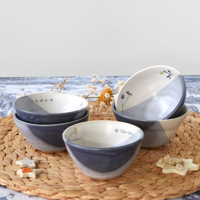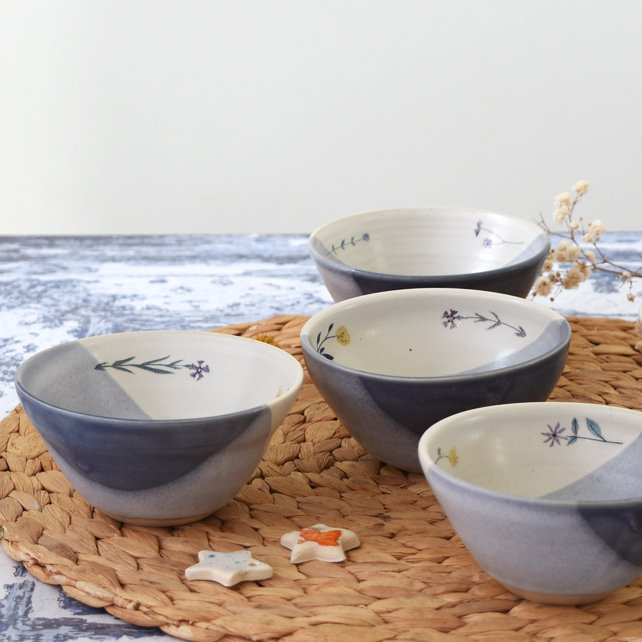 Each bowl is unique with slight glaze variations and choice of flowers.