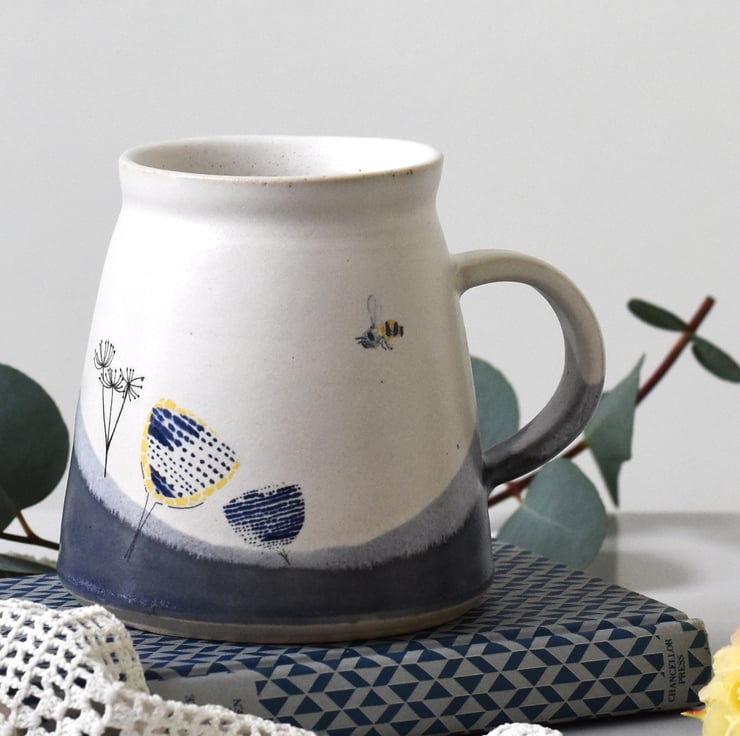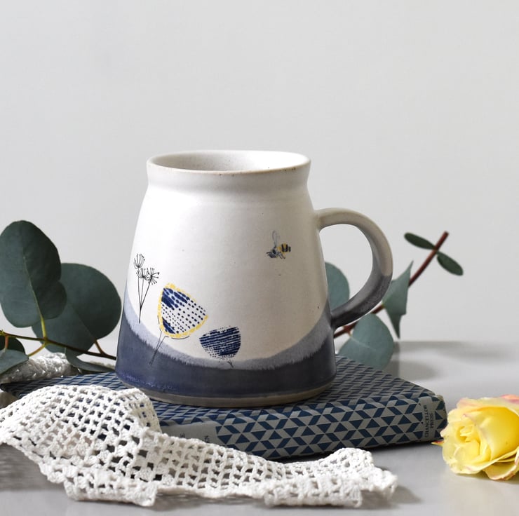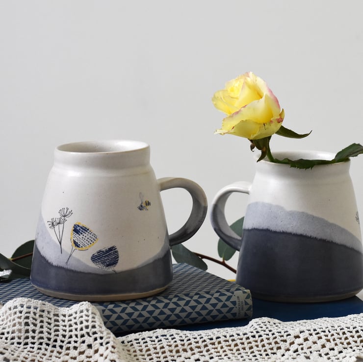 The bee and flower illustrations are created by Zanna. Fused deep into the glaze during a third high temperature firing, they will not mark or fade over time.