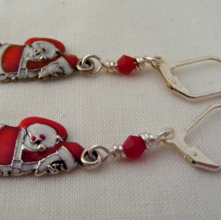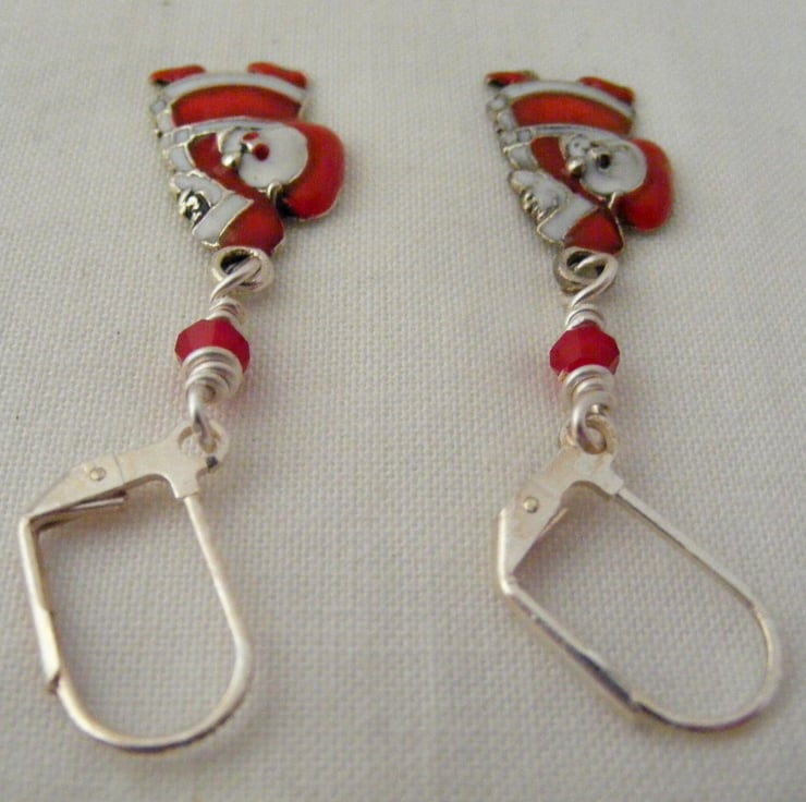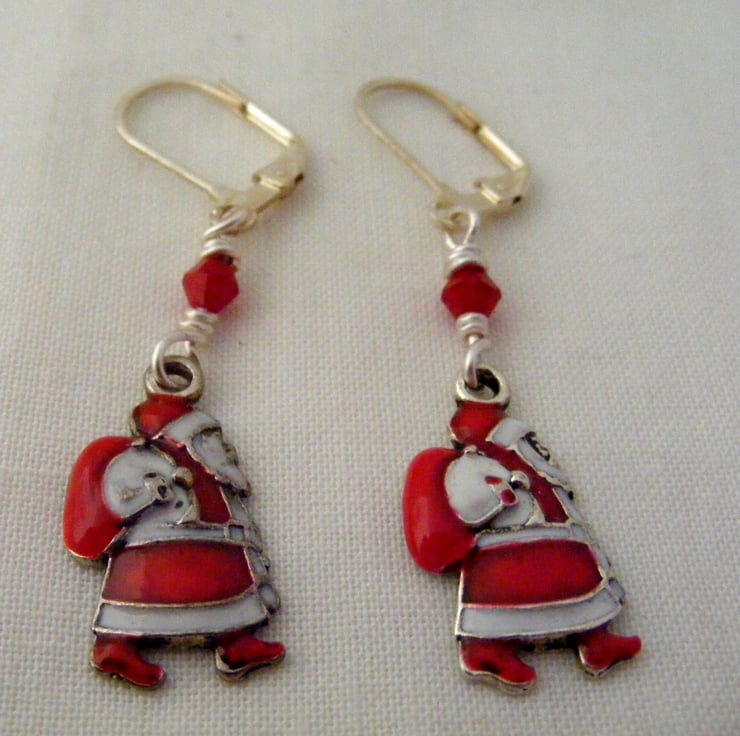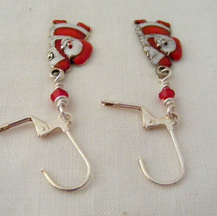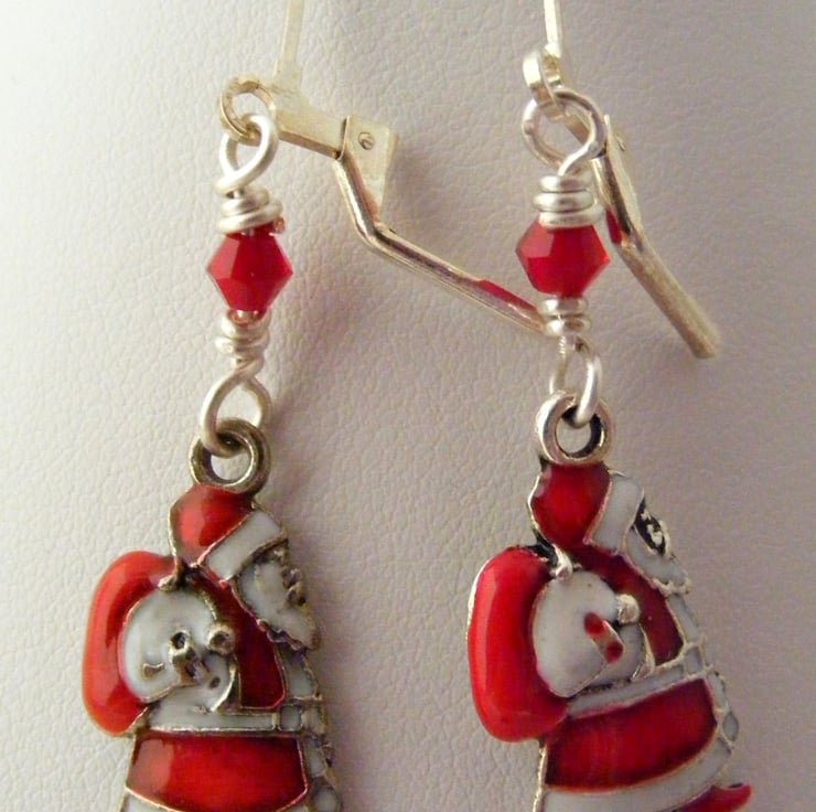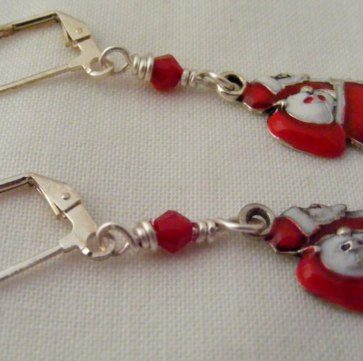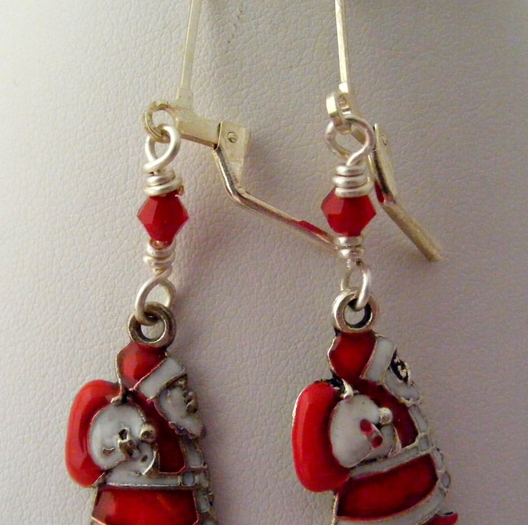Festive enamel santa earrings are made with, 25 x 13 mm santa enamel charms,