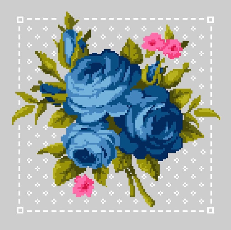 The Blue Rose - Pink and Blue Victorian flowers lace background - Antique floral cross stitch/tapestry chart. Instant download by Vivsters - Cross Stitch Pattern 207B