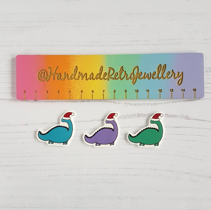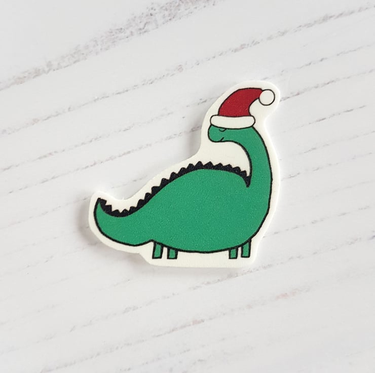 This listing is for one Christmas themed dinosaur pin, choose your colour dinosaur.