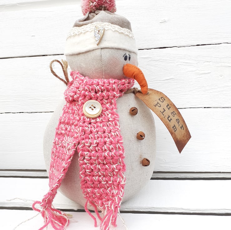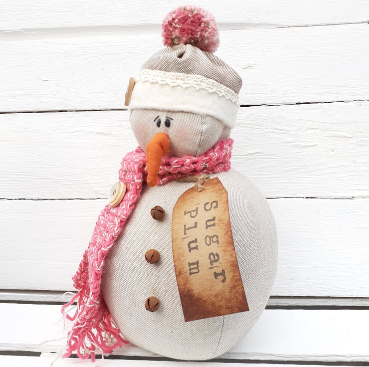 Handmade One of a Kind Primitive Snowman Decoration Free Standing
