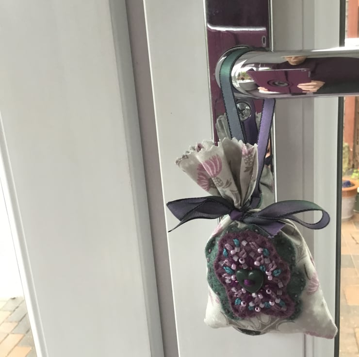This bag of lavender is filled with pure organic lavender grown in my garden in Sheffield, Yorkshire. The lavender has a lovely fragrance to fill the home. Another squeeze the lavender fragrance continues to burst out..... this home hanging decoration keeps on giving!