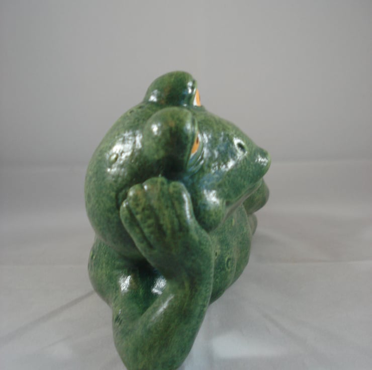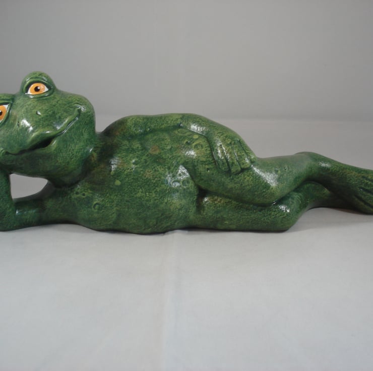 I have for sale a ceramic ornament, which was hand painted by myself. It is a lovely cute green frog figurine, lying down and looking like he is sunbathing! This would make a fun and novel addition to anyone's home, garden, patio or perhaps given as a gift.