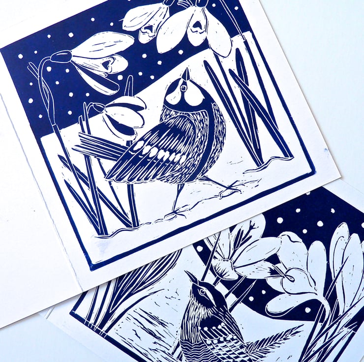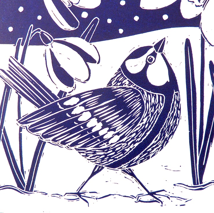 The birds in my garden are a constant joy and inspiration. I am lucky enough to have an old 1930s garden full of snowdrops and a large variety of visiting birds. Their antics have been inspiration for this design.