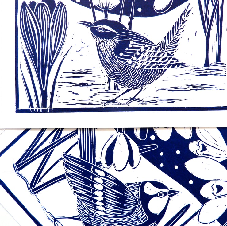 The birds in my garden are a constant joy and inspiration. I am lucky enough to have an old 1930s garden full of snowdrops and crocus and a large variety of visiting birds. Their antics have been inspiration for this design.