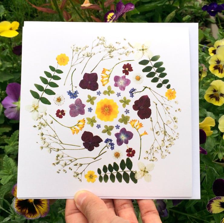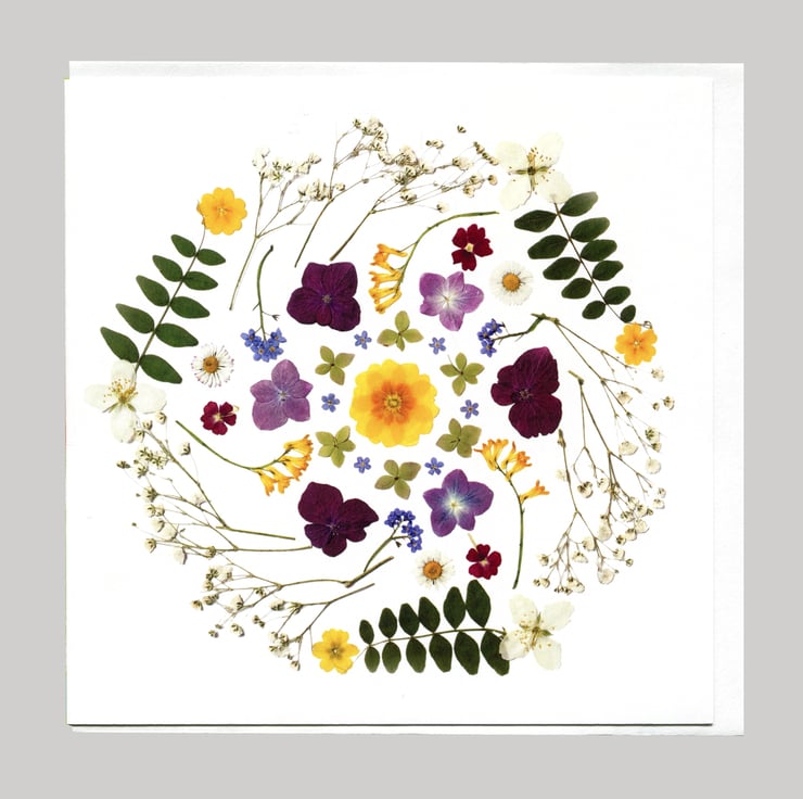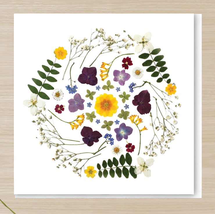 Midsummer Mandala, Pressed Flower Print Card,