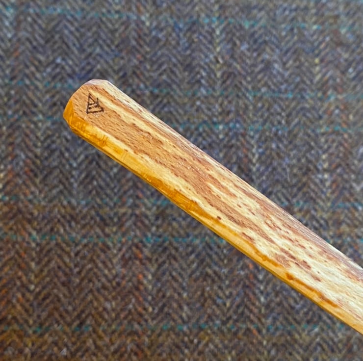 Hand made using traditional tools including axe, knife and drawknife. The finished item shows the lovely smooth facets from these sharp tools and no sanding is used. The stunning wood grain is enhanced and sealed using food grade organic linseed oil. My elf hat makers logo is also burned into the handle. The sycamore log used for making the knife, was locally sourced from an arborist.