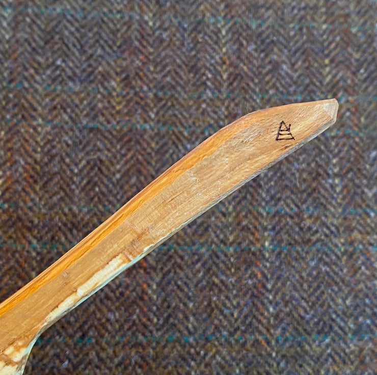Hand made using traditional tools including axe, knife and drawknife. The finished item shows the lovely smooth facets from these sharp tools and no sanding is used. The stunning wood grain is enhanced and sealed using food grade organic linseed oil. My elf hat makers logo is also burned into the handle. The sycamore log used for making the knife, was locally sourced from an arborist.