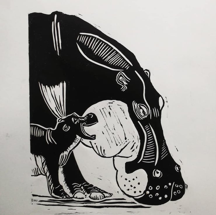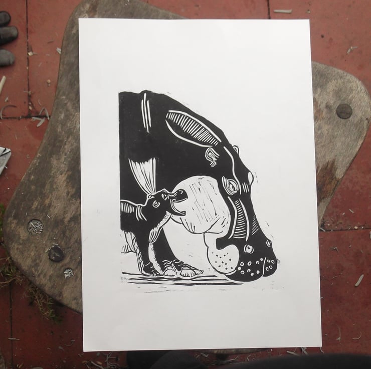 A friend asked me if I could do her a hippo print. Decided to research some hippos and thought a mother/ youngster duo would be good to print.